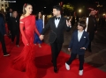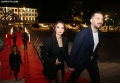 PREMIERE OF 2 GISHT MJALTE 2 - Ermal Mamaqi and Elvana Gjata posing during the premiere of the film 2 Gisht Mjalte 2 at the Palace of Congresses.