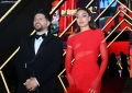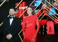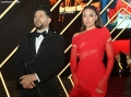 Ermal Mamaqi and Elvana Gjata during the premiere of the film 2 Gisht Mjalte 2 at the Palace of Congresses.