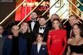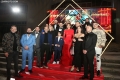 Ermal Mamaqi and Elvana Gjata and other actors posing during the premiere of the film 2 Gisht Mjalte 2 at the Palace of Congresses.