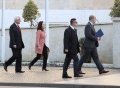 Former US Ambassador to Tirana, Yuri Kim and the Charge d'Affaires at the US Embassy in Tirana, David Wisner entering the premises of the Prime Minister's office, where the Secretary of State of the United States of America, Anthony Blinken and the Minister for Europe and Foreign Affairs, Igli Hasani are expected to sign two memorandums of cooperation, against manipulation and one in the framework of the Fulbright academic exchange program.