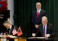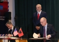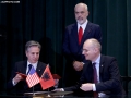 Prime Minister Edi Rama, Secretary of State of the United States of America, Anthony Blinken and Minister for Europe and Foreign Affairs, Igli Hasani signing two memorandums of cooperation, against manipulation and one on framework of the Fulbright academic exchange program.