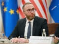 MP of the Freedom Party, Petrit Vasili speaking during a meeting to establish the United Opposition Confederation. According to the initiators, this union will make the opposition parties stronger in their battle against the majority. The chairman of the democratic party, Lulzim Basha, was absent from the meeting.