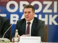 The chairman of the agrarian-environmentalist party, Agron Duka speaking during a meeting to establish the United Opposition Confederation. According to the initiators, this union will make the opposition parties stronger in their battle against the majority. The chairman of the democratic party, Lulzim Basha, was absent from the meeting.