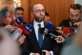 MP Gazment Bardhi speaks for journalists after a meeting where the heads of opposition parties and opposition MPs formalized the creation of the United Opposition Confederation. Bardhi said that the division helped only Edi Rama and together they can defeat him.