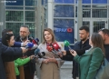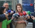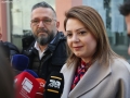 MP Orjola Pampuri speaking for journalists outside the SPAK building. Pampuri and the legal representative of the DP, Rezart Kthupi, submitted the lawsuit announced by the DP and the president Basha for the issue of incinerators.