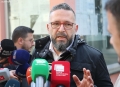 The Legal Representative of the DP, Rezart Kthupi speaking to the journalists outside the SPAK building. MP Orjola Pampuri and the Legal Representative of the Democratic Party, Rezart Kthupi, submitted the lawsuit announced by the Democratic Party and President Basha regarding the issue of incinerators.
