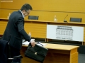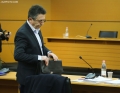 Prosecutor at the Court of Durres, Gezim Copa during a session of the Independent Qualification Commission, IQC, which has started the hearing with him. Copa is going through the transitional re evaluation process, otherwise known as the vetting process, which will investigate his professional skills and assets.