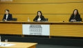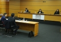 The trial panel Pamela Qirko, Alma Faskaj and Xhensila Pine during a session of the Independent Qualification Commission, IQC with the Prosecutor in the Prosecutor's Office at the Court of Durres, Gezim Copa, who started the hearing with him. Copa is going through the transitional re-evaluation process, otherwise known as the vetting process, which will investigate his professional skills and assets.