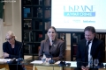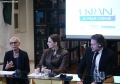 Director of the Agency for Dialogue and Co-Governance, Eridana Cano, executive director of FotoEvidence, Svetlana Bachevanova and photographer Christopher Occhicone during a photo exhibition entitled Ukraine, a War Crime in Tirana. The meeting was organized by the Center for Openness and Dialogue, in cooperation with the Open Society Foundations, Wester Balkans and FotoEvidence, in the framework of the 2nd anniversary of the Russian aggression in Ukraine.
