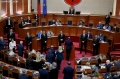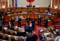 PARLIAMENTARY SESSION - Majority MPs voting during a parliamentary session, where opposition MPs tried to obstruct the session. After the vote, the agreement for migrants signed last November in Rome by Prime Minister Edi Rama and Italian Prime Minister Giorgia Meloni was approved and the draft law for constructions in Protected Areas.