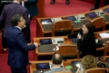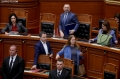 The Deputy Prime Minister and the Minister for Infrastructure and Energy, Belinda Balluku, the Minister of the Interior, Taulant Balla during a parliamentary session, in which the opposition tried to obstruct it. After the vote, the agreement for migrants signed last November in Rome by Prime Minister Edi Rama and Italian Prime Minister Giorgia Meloni was approved.
