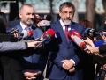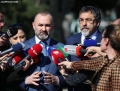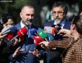 CUCI AND MANJA SPEAK TO THE JOURNALISTS - The chairman of the SP parliamentary group, Bledar Cuci, and the Minister of Justice, Ulsi Manja, talking about the journalists outside the parliament premises. Cuci and Manja spoke about the penal amnesty initiative, from which they withdrew as a party.