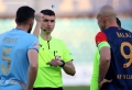 Referee Kreshnik Cjapi, toss the coin, before the football match, Dinamo City vs Vllaznia,0-1, valid for the National Championship, played at the stadium Niko Dovana in Durres.