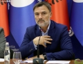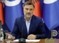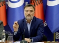 MP Enkelejd Alibeaj speaking during a press conference from the new headquarters of the democratic party. Alibeaj spoke about fiscal amnesty.