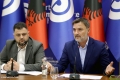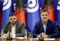 DP's legal representative, Indrit Sefa, and MP Enkelejd Alibeaj speaking during a press conference from the new headquarters of the democratic party. Alibeaj spoke about fiscal amnesty.