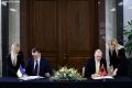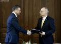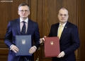 The Minister for Europe and Foreign Affairs, Igli Hasani, and his Ukrainian counterpart, Dmytro Kuleba, signing an agreement during a bilateral meeting before the summit for Ukraine and Southeast Europe in Tirana. During the meeting, the ministers reached an agreement to open an Albanian embassy in Kiev.