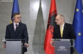 The Minister of Foreign Affairs of Ukraine Dmytro Kuleba speaking at a joint press conference with the Minister for Europe and Foreign Affairs, Igli Hasani during a bilateral meeting before the summit for Ukraine and Southeast Europe in Tirana. During the meeting, the ministers reached an agreement to open an Albanian embassy in Kiev.