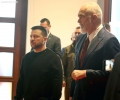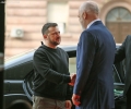 Prime Minister Edi Rama welcoming Ukrainian President Volodymyr Zelensky outside the Prime Minister's office premises, as part of an official reception ceremony. Zelensky visited Prime Minister Rama before participating in the Summit for Ukraine and Southeast Europe in Tirana