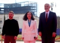 Prime Minister Edi Rama, the President of Kosovo, Vjosa Osmani and the President of Ukraine, Volodymyr Zelensky posing during an official reception ceremony before the Summit for Ukraine and Southeast Europe in Tirana. The focus of the first day of the Summit in Tirana is the support of Ukraine against Russian aggression.