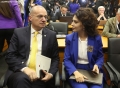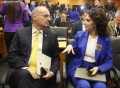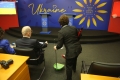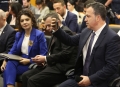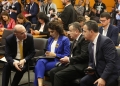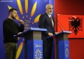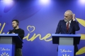 The Minister for Europe and Foreign Affairs, Igli Hasani and the Minister for Relations with Parliament, Elisa Spiropali during a press conference of Prime Minister Edi Rama and Ukrainian President Volodymyr Zelensky during the summit for Ukraine and Southeast Europe in Tirana. During the conference, Rama and Zelensky called to stand by Ukraine in its battle against Russian aggression and the need for the supply of ammunition.