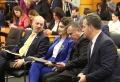 The Minister of the Interior, Taulant Balla, the Minister of Defense, Niko Peleshi, the Minister for Europe and Foreign Affairs, Igli Hasani and the Minister for Relations with the Parliament, Elisa Spiropali during a press conference of Prime Minister Edi Rama and President of Ukraine Volodymyr Zelensky during the summit for Ukraine and Southeast Europe in Tirana. During the conference, Rama and Zelensky called to stand by Ukraine in its battle against Russian aggression and the need for ammunition supply.