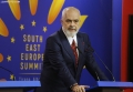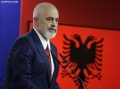 Prime Minister Edi Rama speaking during a joint press conference with Ukrainian President Volodymyr Zelensky during the summit for Ukraine and Southeast Europe in Tirana. During the conference, Rama and Zelensky called to stand by Ukraine in its battle against Russian aggression and the need for the supply of ammunition.