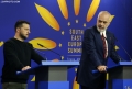 Prime Minister Edi Rama and President of Ukraine Volodymyr Zelensky speaking during a press conference during the summit for Ukraine and Southeast Europe in Tirana. During the conference, Rama and Zelensky called to stand by Ukraine in its battle against Russian aggression and the need for ammunition supply.