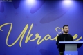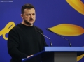 Ukrainian President Volodymyr Zelensky speaking during a joint press conference with Prime Minister Edi Rama during the summit for Ukraine and Southeast Europe in Tirana. During the conference, Rama and Zelensky called to stand by Ukraine in its battle against Russian aggression and the need for the supply of ammunition.