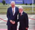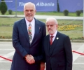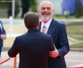 Prime Minister Edi Rama and the European Commissioner for Neighborhood and Enlargement, Oliver Varhely during a reception ceremony before the summit for Southeast Europe and the Western Balkans, one day after the summit for Ukraine in Tirana. The purpose of this summit is the integration of the region into the European Union. The Prime Minister of Kosovo, Albin Kurti, was absent from the summit.