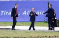 Prime Minister Edi Rama and Serbian President Aleksandar Vucic during a reception ceremony before the summit for Southeast Europe and the Western Balkans, one day after the summit for Ukraine in Tirana. The purpose of this summit is the integration of the region into the European Union. The Prime Minister of Kosovo, Albin Kurti, was absent from the summit.