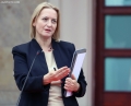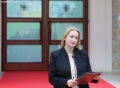 MINISTERS SPEAKING AFTER A GOVERNMENT MEETING - Deputy Prime Minister and Minister of Energy and Infrastructure, Belinda Balluku speaking in front of the Prime Minister, after a government meeting, regarding the approved decisions.
