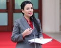 Deputy Prime Minister and Minister of Energy and Infrastructure, Belinda Balluku speaking in front of the Prime Minister, after a government meeting, regarding the approved decisions.