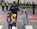 The police force accompanying pupils of the 9-year-old Kosova school in Tirana, who carry bunches of flowers in their hands for the teachers on the occasion of March 7, which is celebrated as Teacher's Day, because it was opened in Korce on this date in 1887 the first Albanian secular school. Police forces have been present around the schools to secure the perimeter.