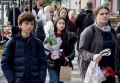 Parents and students of the 9-year-old school Kosova in Tirana with bunches of flowers in their hands for the teachers on the occasion of March 7, which is celebrated as Teacher's Day, because on this date in 1887 the school was opened in Korce the first secular Albanian.