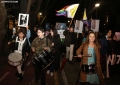 Citizens holding flags and beating drums during a protest on March 8, International Women's Day. Citizens have marched in the streets of Tirana against violence against women.