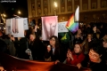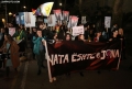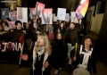 PROTESTS FOR MARCH 8 IN TIRANA - Citizens holding placards as they see bras burning during a protest on the occasion of March 8, International Women's Day. Citizens have marched in the streets of Tirana against violence against women.
