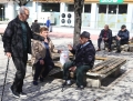 GOOD WEATHER IN TIRANA - Pensioners playing dominoes and resting in the flower garden near XHamllik in Tirana, under the shade of red plum blossoms that bloomed in the first days of spring.