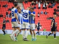 Tirana players celebrate scoring a goal during the football match, Tirana vs Dinamo, 3-2, valid for the Superior Category, played at the Air Albania stadium in Tirana.