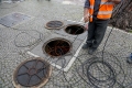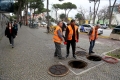 Employees of the Directorate of Roads and Public Lighting of the Municipality of Tirana working on the cables in the underground in front of the Prime Minister's office in Tirana.