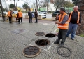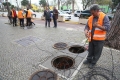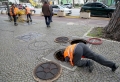 WORK BEFORE THE PRIME MINISTER - Employees of the Directorate of Roads and Public Lighting of the Municipality of Tirana working on the cables in the underground in front of the Prime Minister's office in Tirana.