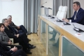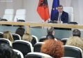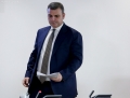SEJKO SPEAKS IN CONFERENCE - The Governor of the Bank of Albania, Gent Sejko, entering a press conference. Sejko said that prices in the country are decreasing, due to the drop in inflation in foreign markets, but production costs in the domestic market remain high.