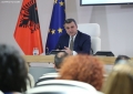 The Governor of the Bank of Albania, Gent Sejko speaking at a press conference. Sejko said that prices in the country are decreasing, due to the drop in inflation in foreign markets, but production costs in the domestic market remain high.