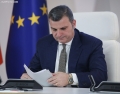 The Governor of the Bank of Albania, Gent Sejko, entering a press conference. Sejko said that prices in the country are decreasing, due to the drop in inflation in foreign markets, but production costs in the domestic market remain high.