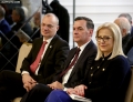 The Minister for Europe and Foreign Affairs, Igli Hasani, the Head of the Supreme Court, Sokol Sadushi and the Speaker of the Parliament, Lindita Nikolla during the promotion of the book of former diplomat Fatos Tarifa, American exceptionalism and the global leadership of the United States of America, which deals with world geopolitics and the role of the United States .