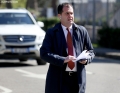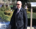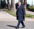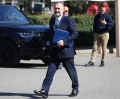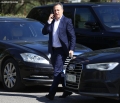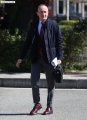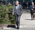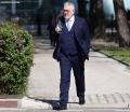 Minister of Defense, Niko Peleshi entering the parliament building for a parliamentary session.