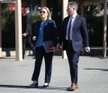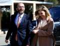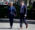 The Minister of Agriculture and Rural Development, Anila Denaj and MP Lavdrim Krashi entering the parliament building for a parliamentary session.
