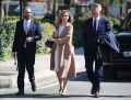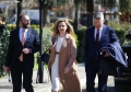 Minister of Justice, Ulsi Manja entering the parliament building for a parliamentary session.