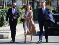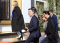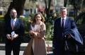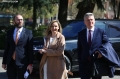 MPs Eneklejd Alibeaj, Lulzim Basha and Merita Bakiu entering the parliament building for a parliamentary session.