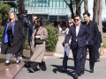 MPs Luljeta Bozo, Albana Vokshi, Xelal Mziu and Elda Hoto entering the parliament building for a parliamentary session.