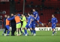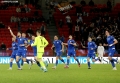 FOOTBALL TIRANA TEUTA - Teuta players celebrate scoring a goal during the football match, Tirana vs Teuta, 1-2, valid for the Albanian Super League, played at the Air Albania stadium in Tirana.